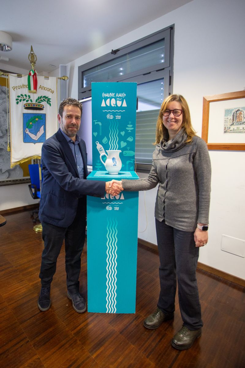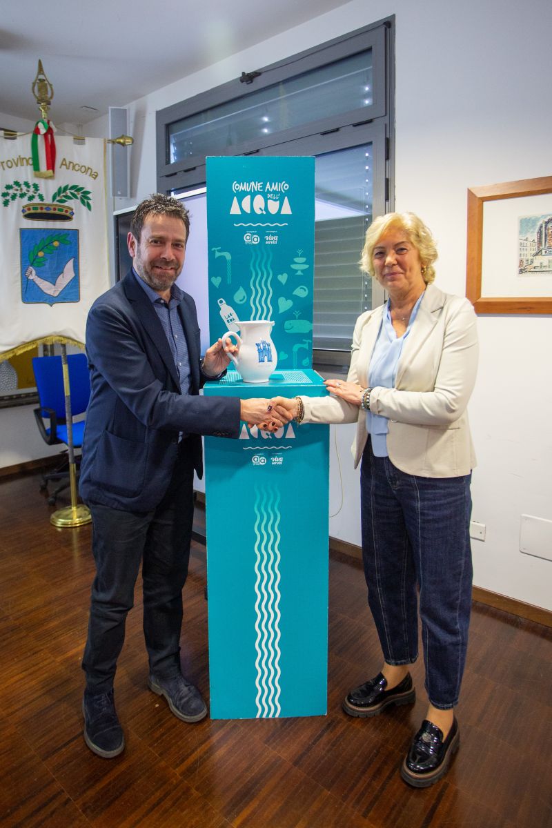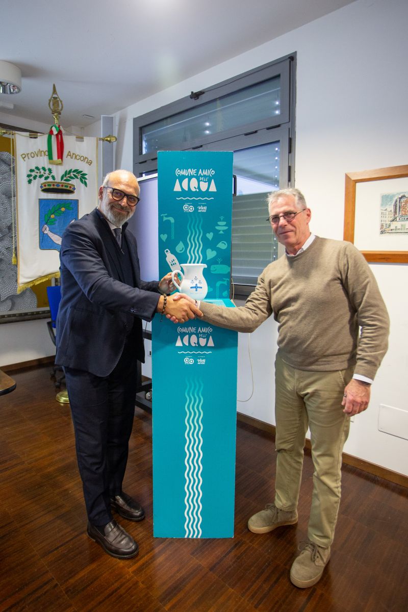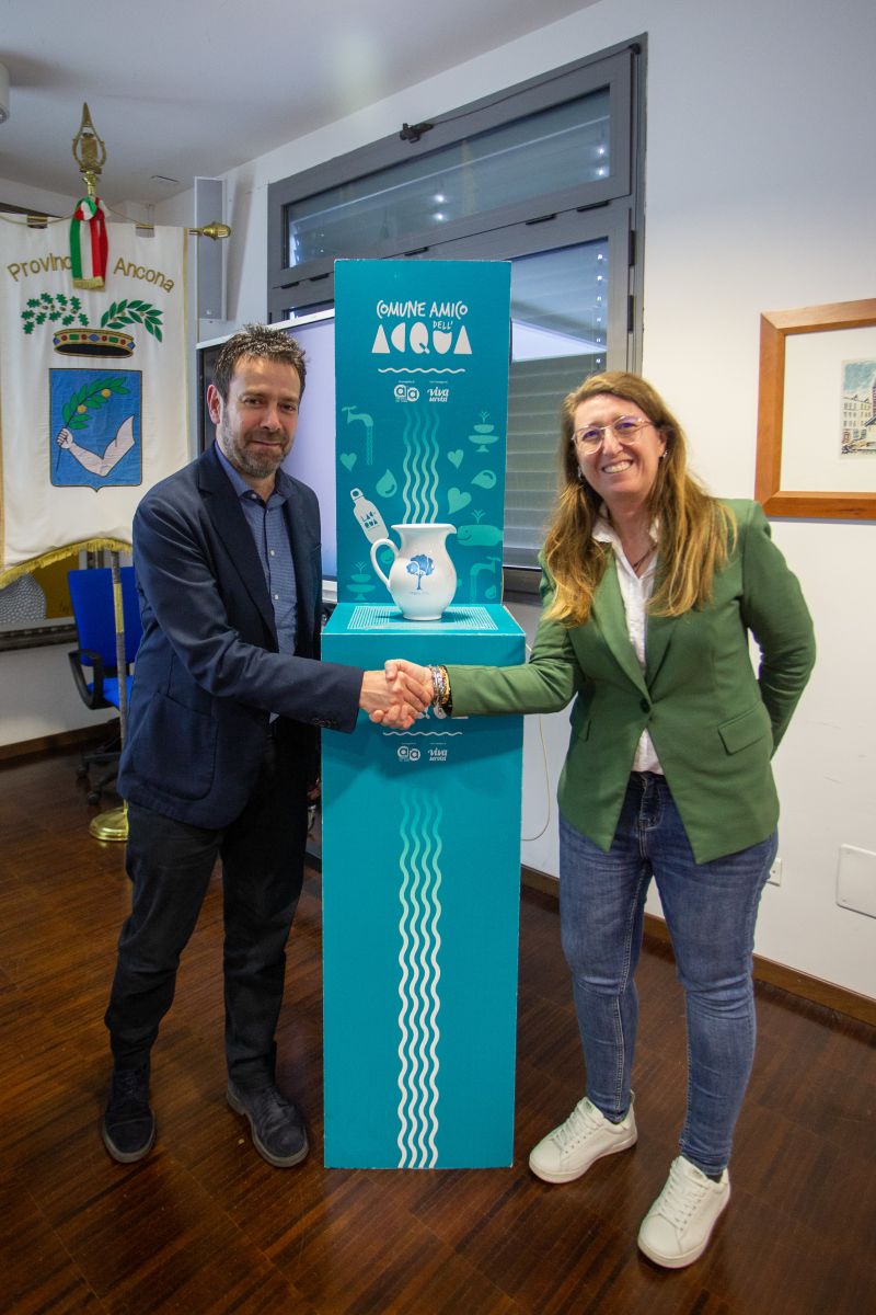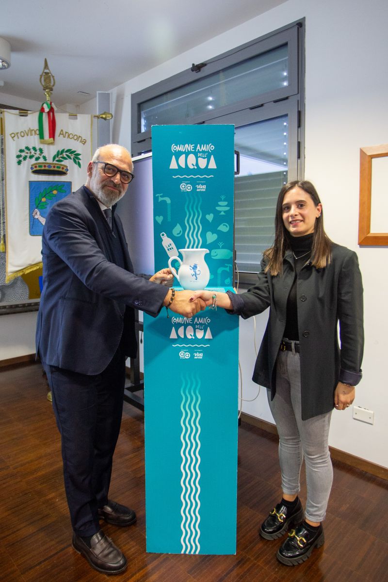 Nel corso della cerimonia, è stata inoltre consegnata la brocca “Comune amico dell’acqua" agli enti virtuosi che hanno già attuato il progetto; il riconoscimento, assegnato a fine 2023 ai primi due comuni aderenti, Jesi e di Ancona, è andato ad altri 19 Comuni: Castelfidardo, Castelleone di Suasa, Castelplanio, Cerreto d’Esi, Corinaldo, Cupramontana, Falconara Marittima, Monte San Vito, Montecarotto, Montemarciano, Numana, Offagna, Ostra Vetere, Rosora, San Marcello, Santa Maria Nuova, Senigallia, Serra De’ Conti e Staffolo.