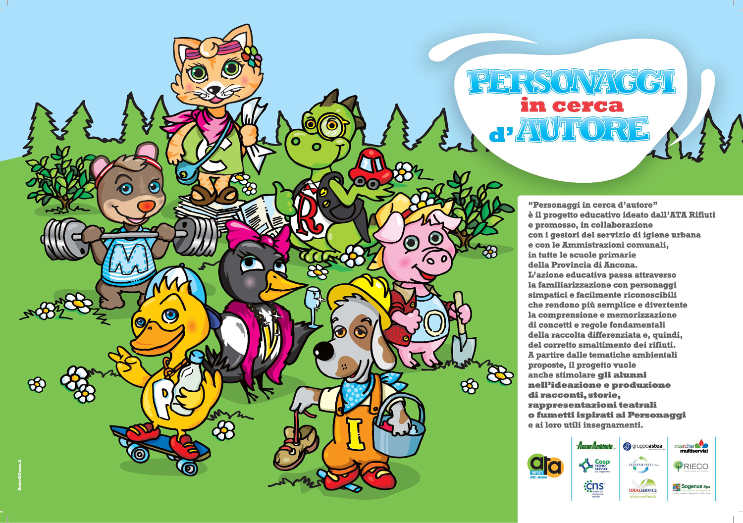 Per l’anno scolastico 2014-2015, la proposta formativa dell’ATA dedicata alle scuole primarie di tutto il territorio provinciale, nell’ambito del rinnovato progetto “Personaggi in cerca d’autore 2.0”, vuole diversificare, oltre all’approccio, anche le tematiche e le modalità di svolgimento dei laboratori in base alle fasce di età. È nostra convinzione, infatti, che offrire un percorso formativo duraturo e continuativo che cambi e si evolva nel tempo e che possa accompagnare l’alunno nei cinque anni di scuola primaria, sia il metodo più efficace per contribuire alla sensibilizzazione del giovane, e quindi del futuro adulto, alla salvaguardia e al rispetto del nostro ambiente.